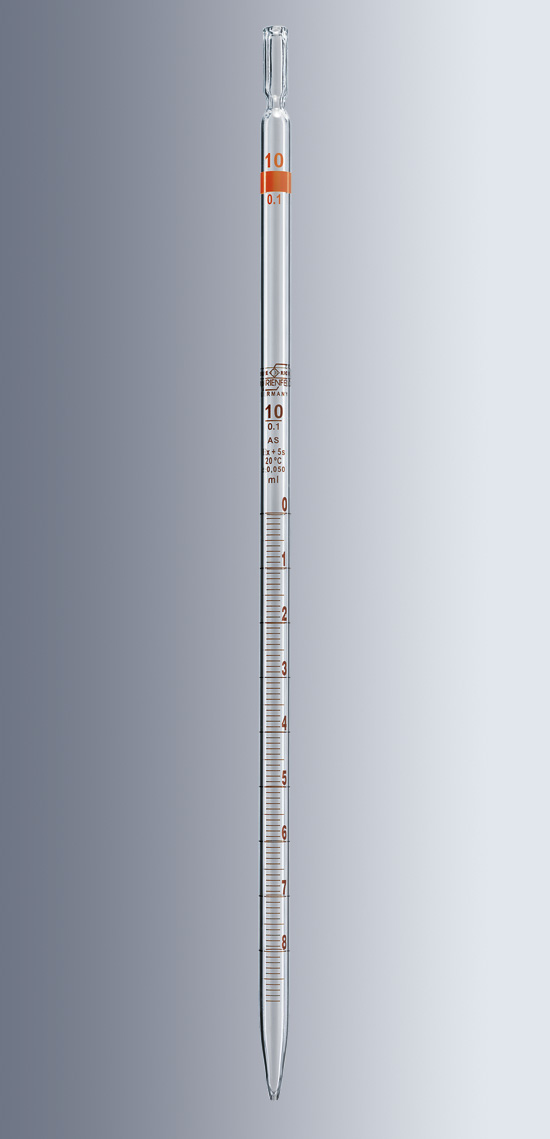 • A graduated pipette is a pipette with its volume, in increments, marked along the tube.